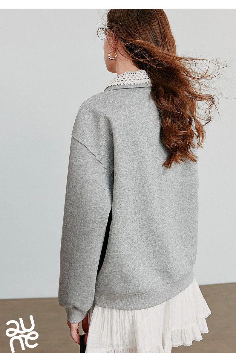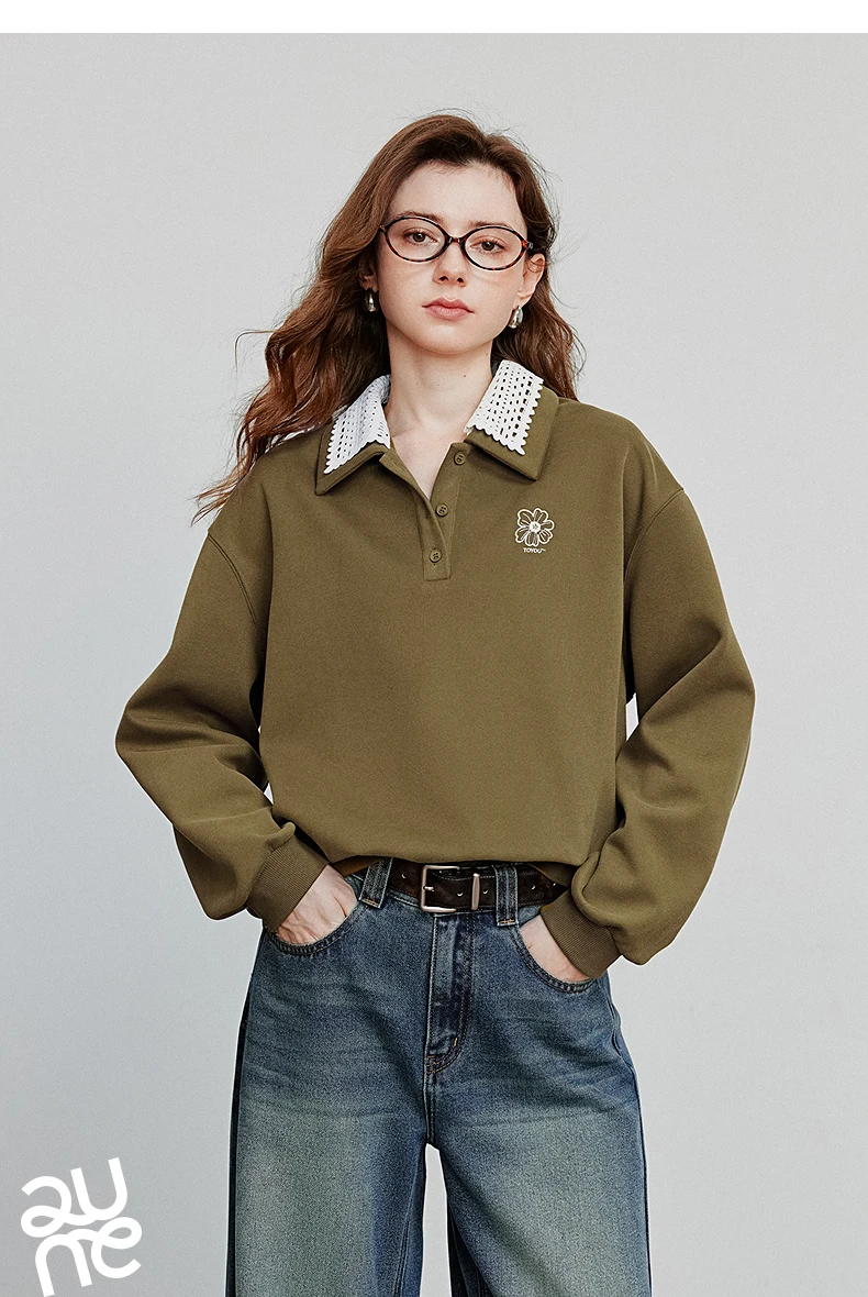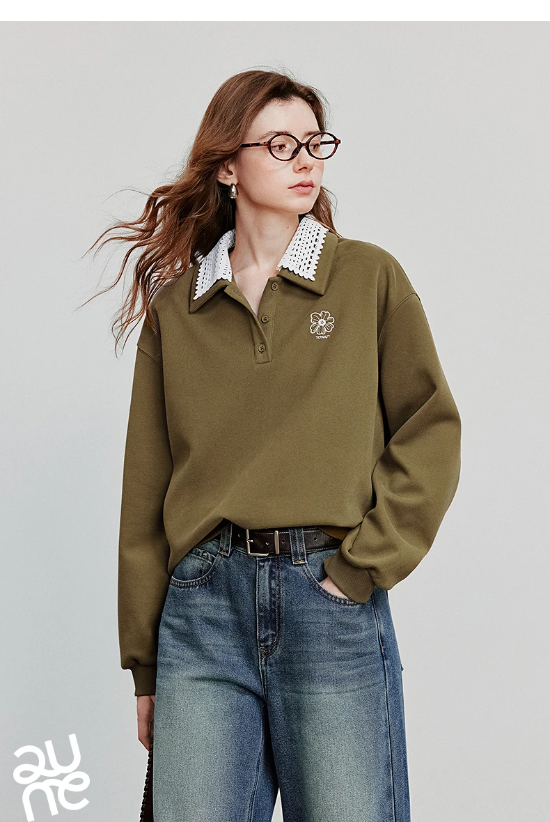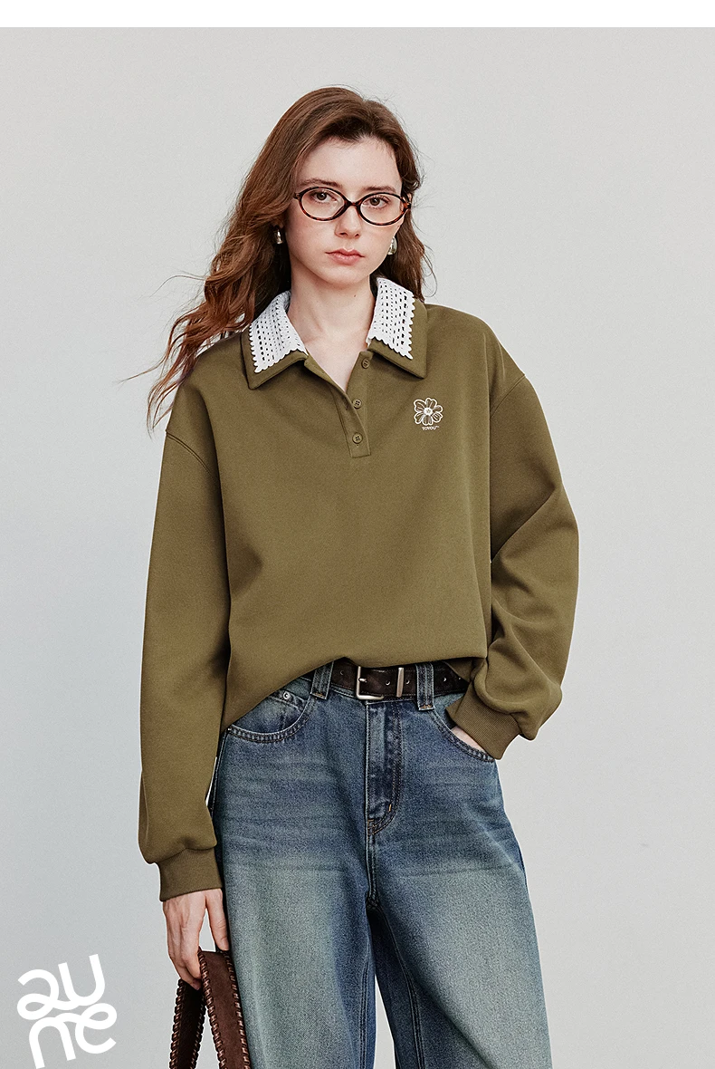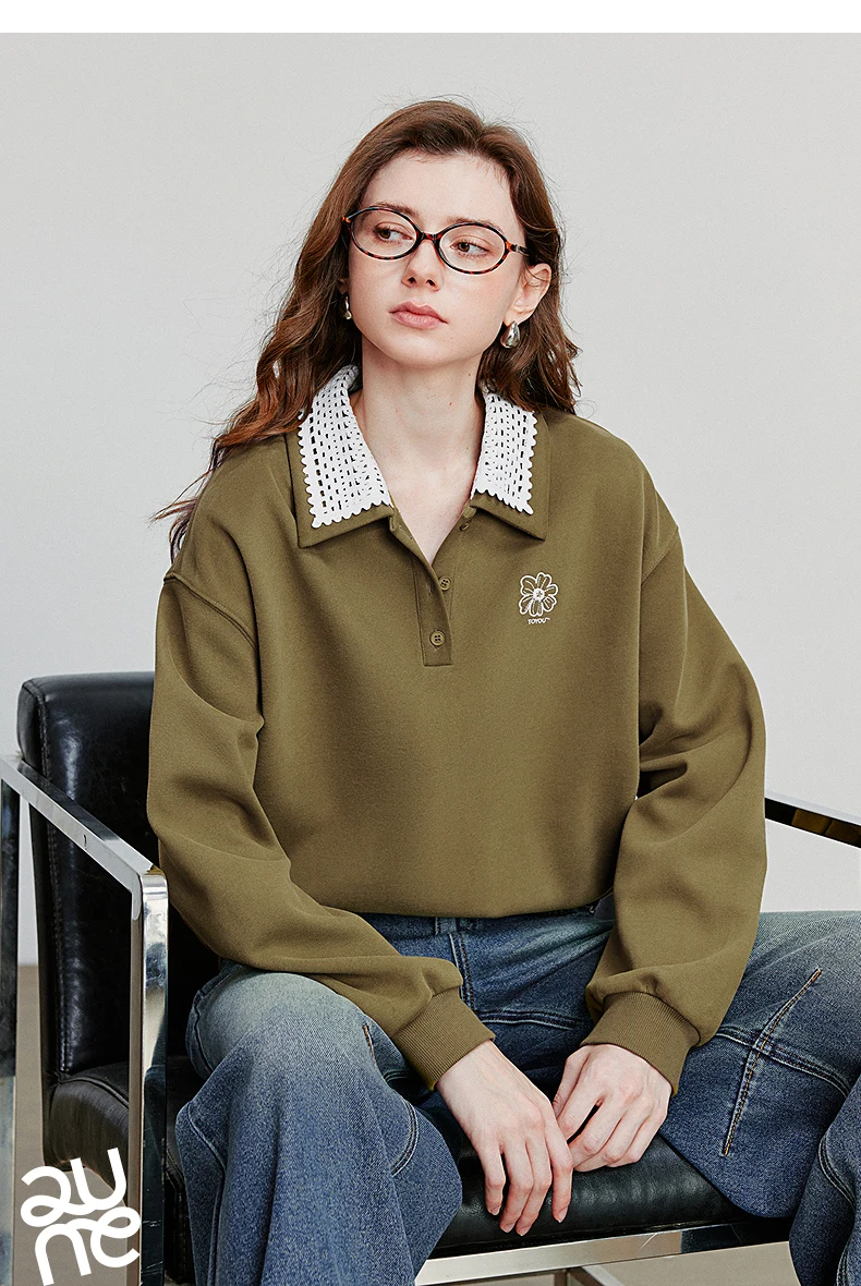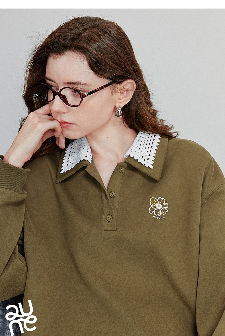 TOYOUTH Women Sweatshirt 2025 Autumn New Green Velvet Embroidery Contrasting Col
